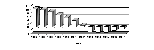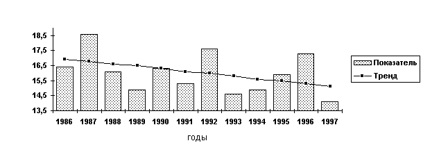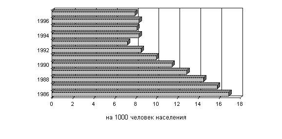 Данный показатель является важнейшим интегральным показателем, рекомендованным Всемирной Организацией Здравоохранения (ВОЗ) в качестве критерия состояния здоровья и уровня жизни населения того или иного региона. Состояние здоровья и тенденция смертности населения Мурманской области адекватно проявляются в показателях СППЖ. Несмотря на некоторое увеличение показателя СППЖ за последние два года его уровень в 1996 году по-прежнему ниже величин конца 80-х годов. Так, в сравнении с 1989 годом в 1996 году показатель СППЖ в Мурманской области ниже на 4.3 года, в том числе у мужчин - на 5.3 года, у женщин - на 2.3 года.